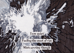 2019Europe is lost - I am Quiet - gebaseerd op een film-still uit de gelijknamige videoclip gemaakt door Manuel Braun op basis van found footage. De begeleidende tekst: "'I am quiet. Feeling the onset of riot. Riots are tiny though " is een fragment van het lied "Europe is Lost" afkomstig van het album "Let them eat chaos" uit 2016 van Kae Tempest.