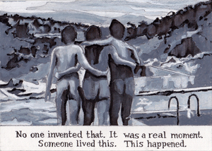 2019Drie naakte jonge mensen, op de rug gezien. Beeld gebaseerd op een film-still uit de BBC documentaire "All watched over by machines of loving grace" van de Britse documentairemaker Adam Curtis, waarin hij stelt dat machines gefaald hebben de mensheid te bevrijden en in plaats daarvan geleid hebben tot een verwrongen en versimpeld beeld van de wereld om ons heen. De titel "It was a real moment" en de begeleidende tekst "No one invented that. It was a real moment. Someone lived this. This happened." zijn fragmenten van het filmscript van de film Blade Runner 2049 van de filmmaker Denis Villeneuve uit 2017.