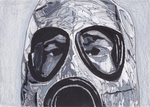 2018Portret gebaseerd op fragment van een krantenfoto, waarschijnlijk uit de Volkskrant, uitgegeven ergens tussen 2005 en 2018. Los van de context, los van de inhoud en los van de gebeurtenis probeer ik een vervliegend moment (niets veroudert zo snel als krantennieuws) langer vast te houden en te laten zien dat het altijd om mensen draait, ook al weten we niet wie het is. Dit beeld komt uit een groter beeld uit een oorlogsgebied, waarschijnlijk de oorlog in Syrië.