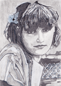 2018Portret van Babette S. gebaseerd op een foto uit de Berliner Zeit uit 1977, met de begeleidende tekst: "Sie war erst 14". Babette (of Babsi) was de beste vriending ban Christiane Felscherninov de schrijfster van het boek "Christiane F. Wir Kinder vom Bahnhof Zoo", die in 1981 verfilmd werd met een belangrijke rol voor David Bowie. Babette S. was een van de jongste slachtoffers van de heroïne-epidemie uit de jaren 80.