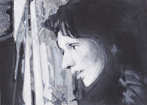 2018Portret gebaseerd op fragment van een krantenfoto, waarschijnlijk uit de Volkskrant, uitgegeven ergens tussen 2005 en 2018. Los van de context, los van de inhoud en los van de gebeurtenis probeer ik een vervliegend moment (niets veroudert zo snel als krantennieuws) langer vast te houden en te laten zien dat het altijd om mensen draait, ook al weten we niet wie het is, wanneer het beeld genomen is en waar de gebeurtenis plaatsvindt.