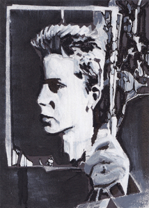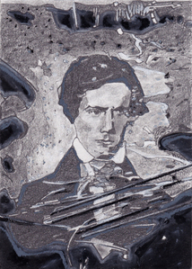 2018Portret gebaseerd op een van de eerst ontwikkelde foto's. mofgelijk de eerste "selfie". De beschadigingen op de foto maken een integraal onderdeel uit van het werk.