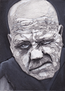 2018Portret gebaseerd op fragment van een krantenfoto, waarschijnlijk uit de Volkskrant, uitgegeven ergens tussen 2005 en 2018. Los van de context, los van de inhoud en los van de gebeurtenis probeer ik een vervliegend moment (niets veroudert zo snel als krantennieuws) langer vast te houden en te laten zien dat het altijd om mensen draait, ook al weten we niet wie het is. Dit werk maakt onderdeel uit van een groter werk, met als werktitel "Contempt"