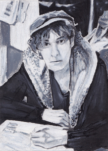 2018Portret van de Amerikaanse schrijfster Ayn Rand. In Europa wordt ze nauwelijks gelezen, en vooral afgedaan als een conservatieve schrijfster waarvan de boeken literair niet de moeite waard zijn, in de Verenigde Staten voert ze nog steeds de best-seller lijsten aan. In haar beroemdste boek "the fountainhead" speelt een architect de hoofdrol, als een hedendaagse Prometheus, het boek "Atlas shrugged" is haar magnus opus, waarin ze kapitalisme en moraliteit met elkaar in verband brengt. Ik vind haar boeken op drie manieren interessant: de vaak genoemde dichotomie tussen het vrije westen en de (voormalige) Soviet Unie, waarbij de Soviet-Unie op een Utopie is gebaseerd en daarom gedoemd is te falen, klopt niet: ook het westen is gebaseerd op een Utopie, namelijk het werk van Ayn Rand. Ten tweede baseerde Alan Greenspan zijn economisch beleid op het werk van Ayn Rand, wat een illustratie is van het idee dat werkelijkheid gebaseerd is op fictie, en niet dat fictie een afspiegeling is van de werkelijkheid, of een afwenden daarvan. Tot slot vond ik de boeken best goed leesbaar.