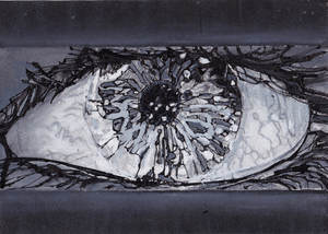 2018Tekening gebaseerd op een bewerkte filmstill uit de film "Until the end of the world" uit 1991 van Wim Wenders. Centraal in de film staat een apparaat waarmee het mogelijk is je eigen dromen te zien, en daarmee je eigen ziel, direct en ongefilterd. Dit werk zo verslavend dat mensen zich afkeren van de realiteit, ze lijden aan een "disease of images".