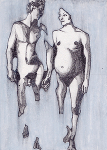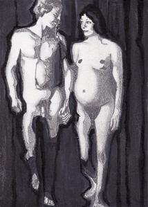 2018Tekening gebaseerd op een foto van een man en een vrouw, genomen door de Amerikaanse fotograaf George M. Hester. Toen de wetenschapper Carl Sagan samen met Ann Druyan voor de ruimtesonde Voyager 1, gelanceerd in 1977 een boodschap voor buitenaards leven samenstelden in de vorm van een gouden plaat waar behalve geluid ook beeld in was opgenomen wilden ze ook de foto van dit naakte koppel toevoegen. Bezwaar tegen "naaktheid in de ruimte" het ervoor gezorgd dat in plaats van deze foto (bijgenaamd "the odd couple" geen onderdeel werd van de plaat, maar alleen een silhouet van dit beeld is nu nog steeds onderdeel van de gouden plaat.