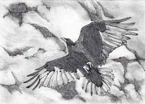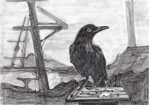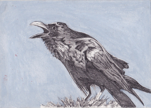 2016Tekening van een raaf - verwijzing naar het gedicht "The Raven" van Edgar Allen Poe.