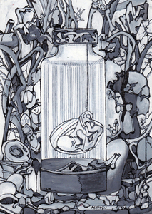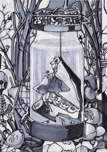 2016Tekening gebaseerd op een preparaat van de Nederlandse anatoom, zoöloog en botanicus Frederik Ruysch (1638 - 1731). Hij presenteerde zijn preparaten net als de anatomische tekeningen van Andreas Vesalius/ Jan Steven Kalkar als kunstwerken of lugubere composities, waardoor het onderscheid tussen kunst en wetenschap vervaagde.